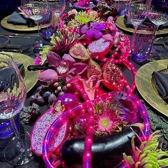 Tafelinszenierung zu illustrem Ganslessen "Zur Geilen Gans" in der Ballonhalle Wien
